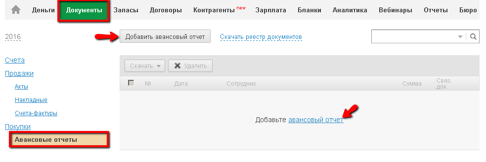 А. Во вкладке Документы сформируйте авансовый отчет по дате оплаты за сервис.