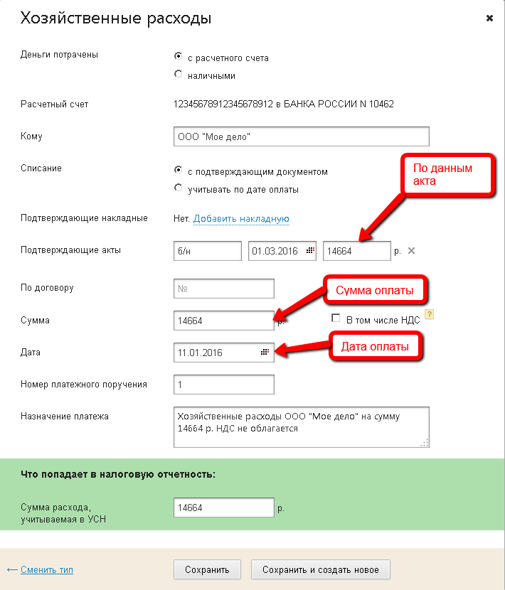Справочно: При расчете налога при УСН-15% сервис учтет расход автоматически по наиболее поздней из указанных дат. Так, например, если сервис был оплачен 11.01.2016, а акт датирован 01.03.2016 г., то расход на оплату сервиса в КУДиР при УСН будет учтен 01.03.2016 г.