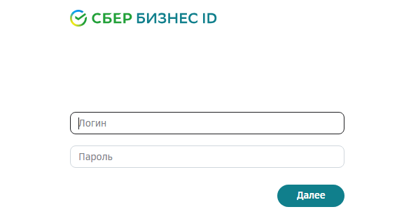 4. Введите логин и пароль от СББОЛ и нажмите «Далее»: