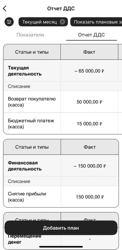 Посмотрите, как это работает в приложении «Моё дело: бизнес и финансы». Система самостоятельно «вытаскивает» все данные по входящему потоку из договоров с вашими клиентами.