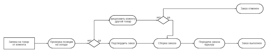 Бизнес проанализировал логистику, работу менеджеров, работников склада, курьеров. Нашёл слабые места. Длительные задержки возникали при подтверждении заказа и обработке на складе. Некоторые задачи дублировались. Предположили, что автоматизация отдельных этапов ускорила бы весь процесс.