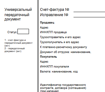 Статус «1» — используется как счёт-фактура и как первичный документ одновременно. Такой вариант применяют при операциях с НДС.
