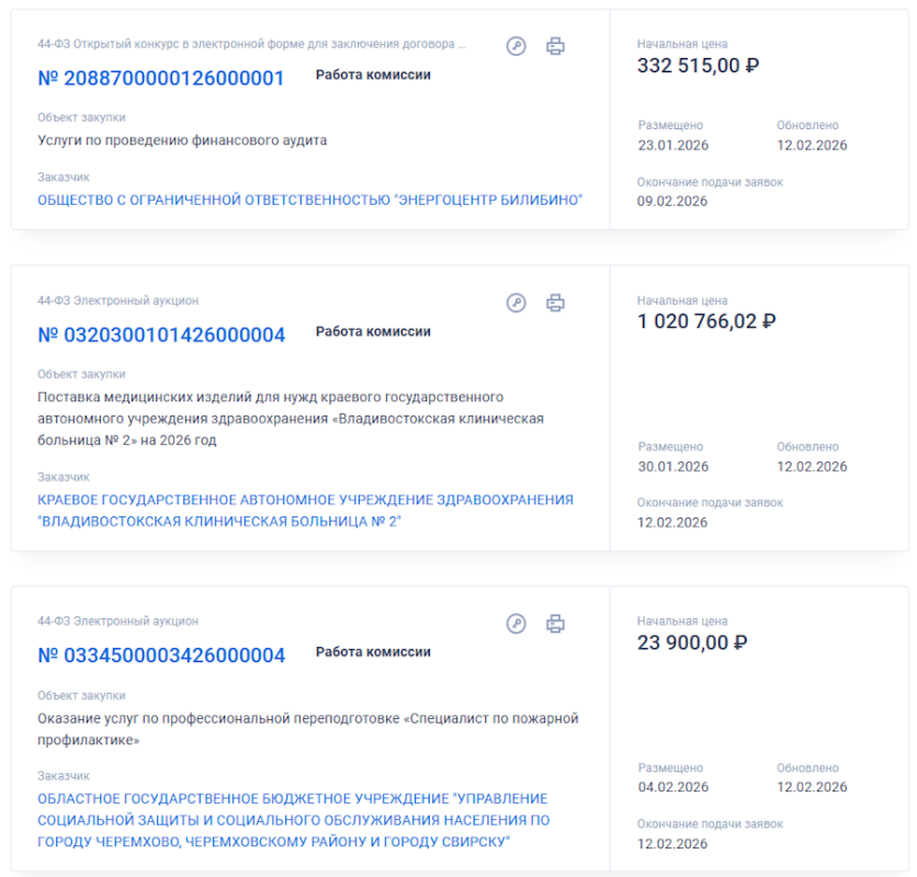 Вот еще несколько «свежих» тендеров — разным госучреждениям требуются услуги аудита, профессиональной переподготовки и поставок медицинских изделий: