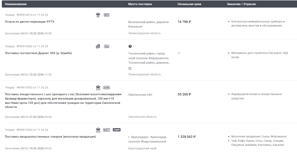 Результаты поиска тендеров на РосТендер — официальном портале закупок