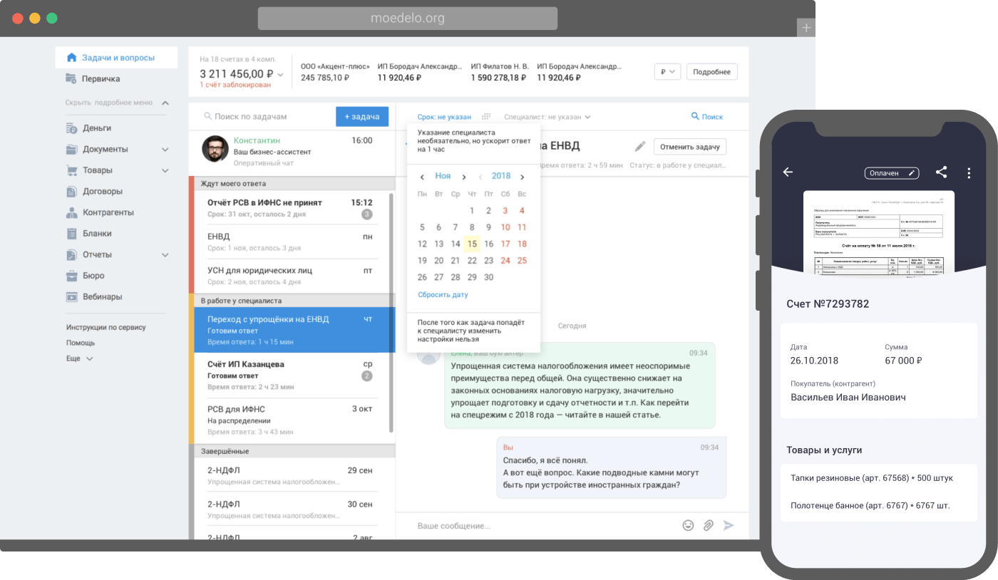Контролируйте все движения по расчетному счету и моментально отправляйте готовые платежки на оплату налогов и взносов в интернет-банк с любого мобильного устройства, где бы вы ни находились.