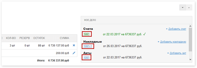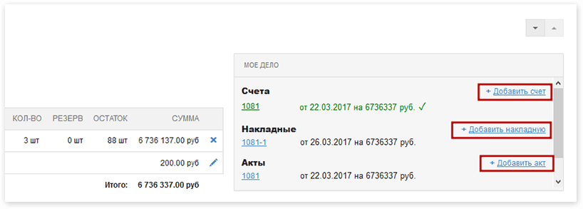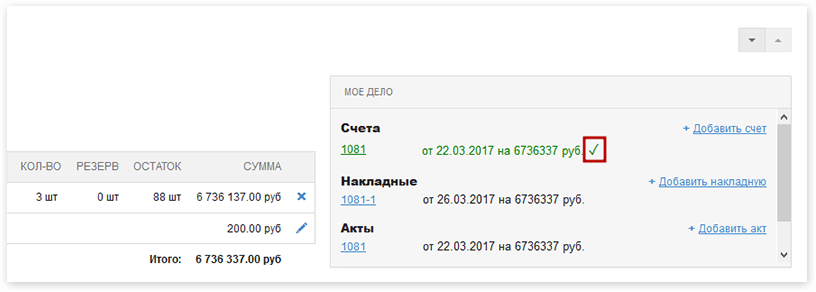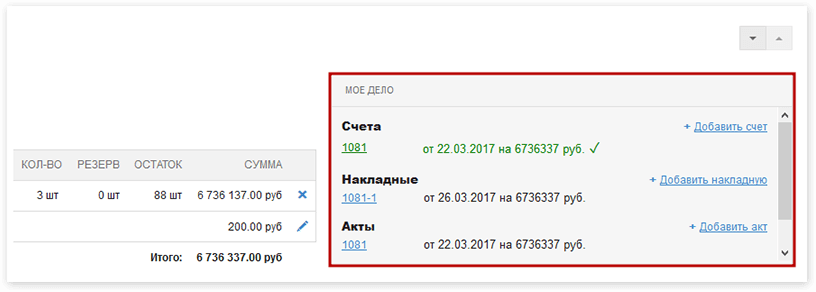 Встроенный виджет «Моё дело» позволит создавать счета, накладные и акты прямо на вашем сайте, передавать их в «Моё дело» и отслеживать оплату счетов.