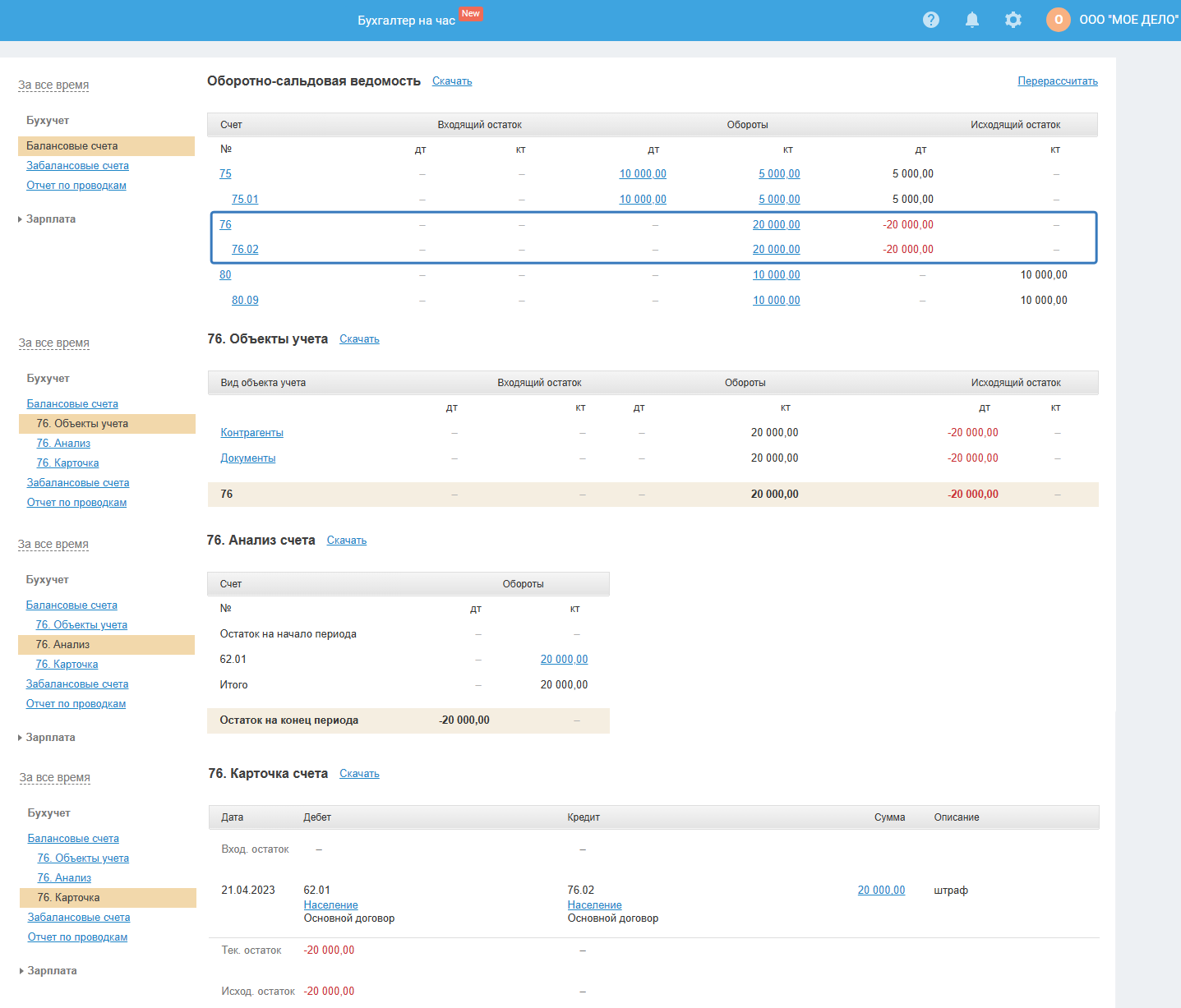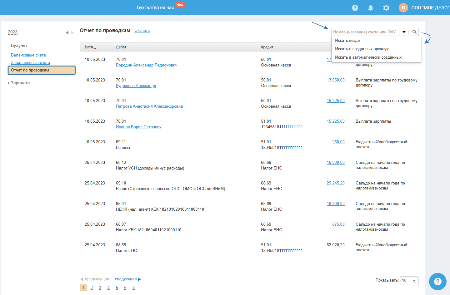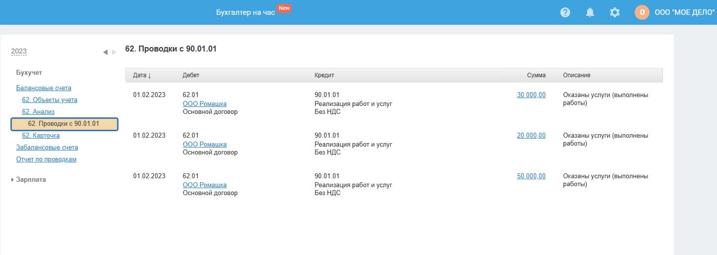 Нажав на ту или иную сумму (с активной ссылкой), вы увидите проводки с корреспондирующим (взаимосвязанным) счётом: