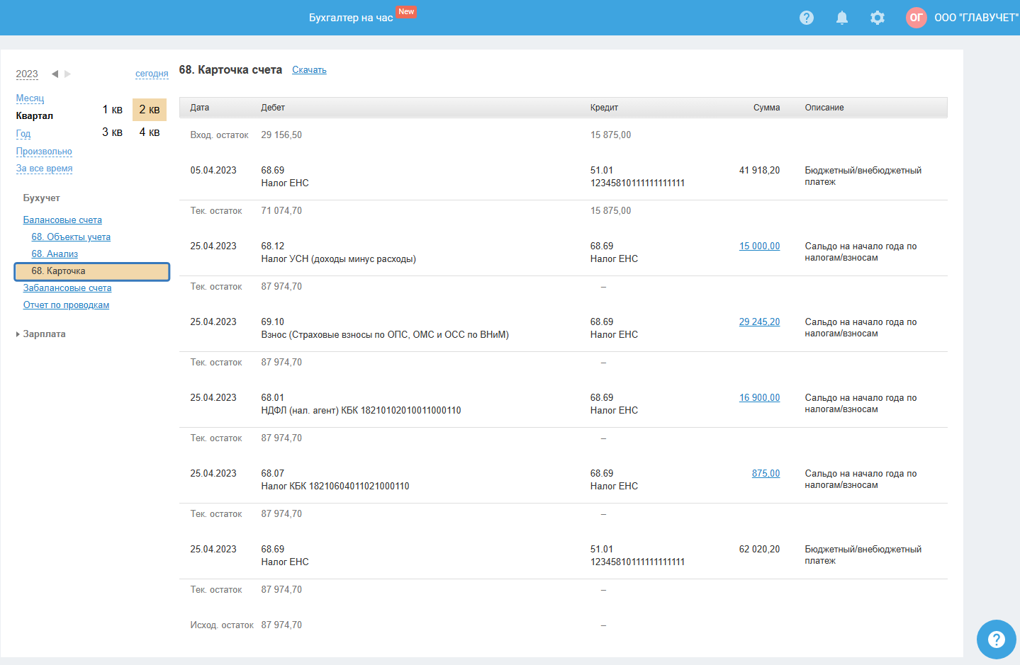 Выбрав конкретный бух. счёт, нажмите слева «Карточка»:
