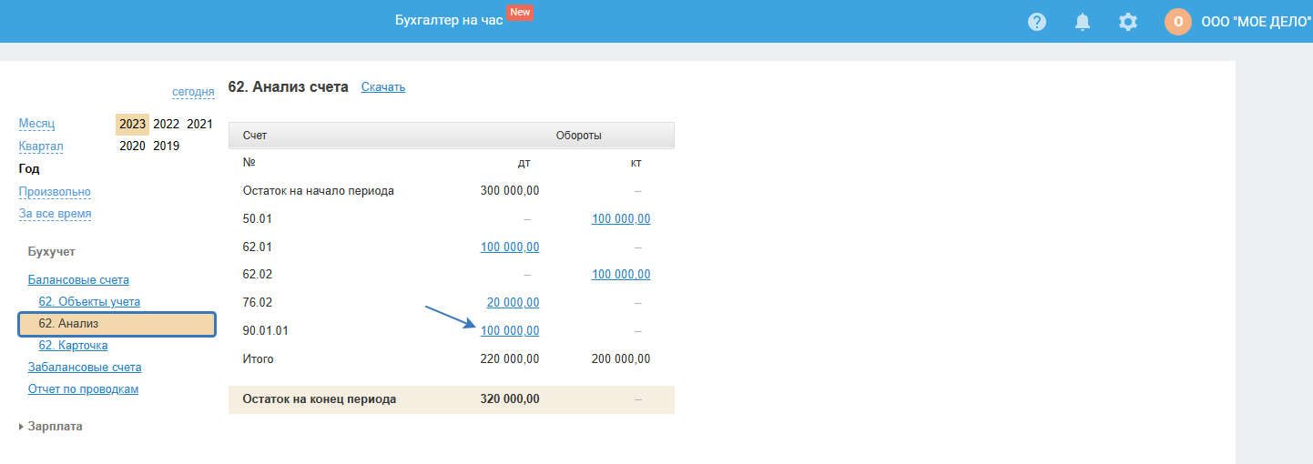 Выбрав конкретный бух. счёт, нажмите слева «Анализ»: