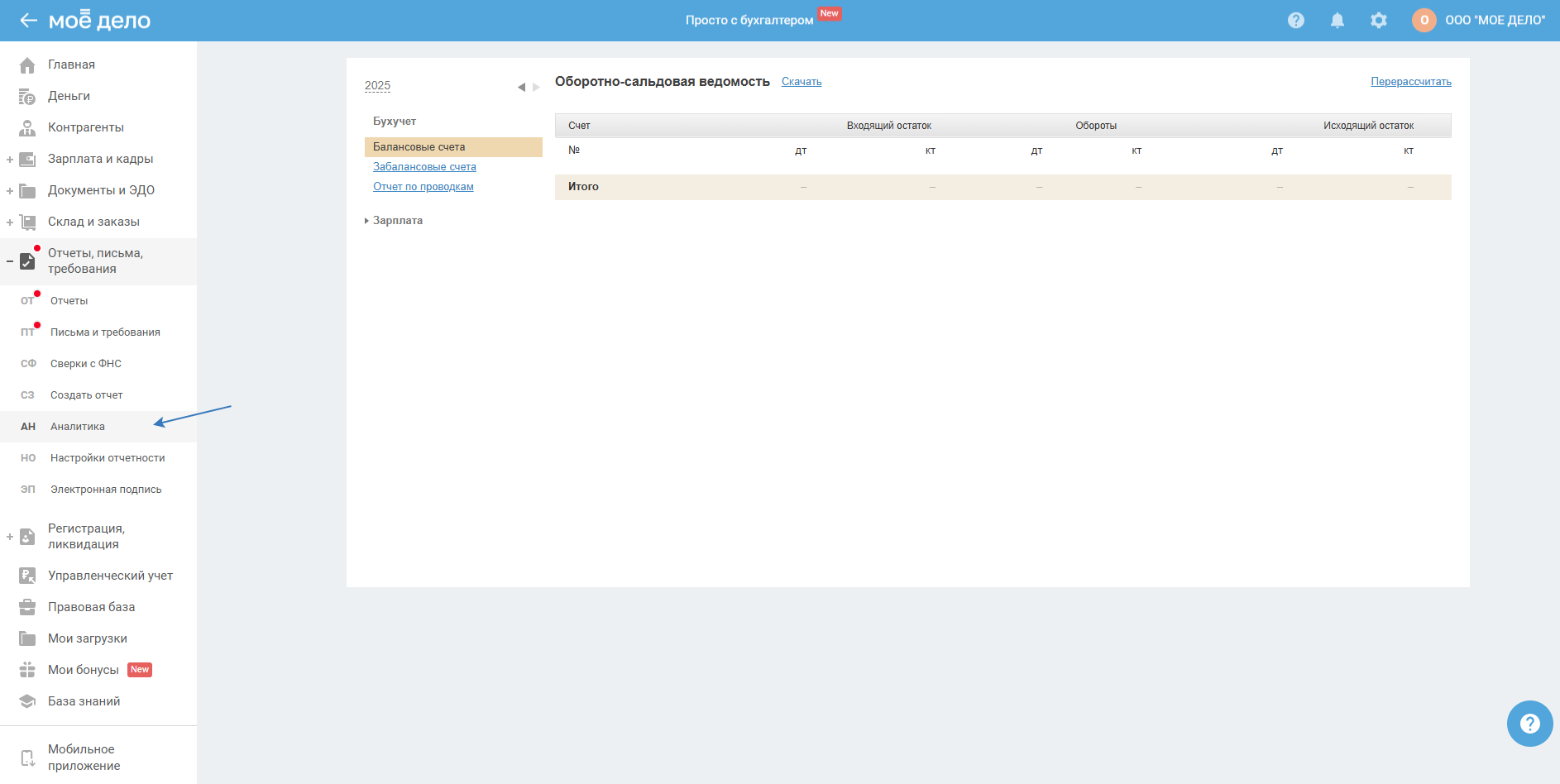 Для этого перейдите в раздел «Отчёты, письма, требования — Аналитика»: