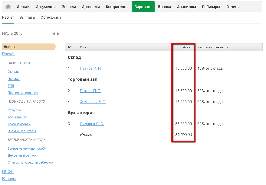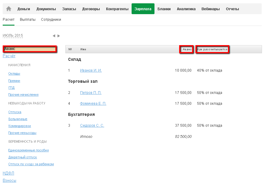 Как установить сотруднику аванс можете посмотреть в следующей инструкции.