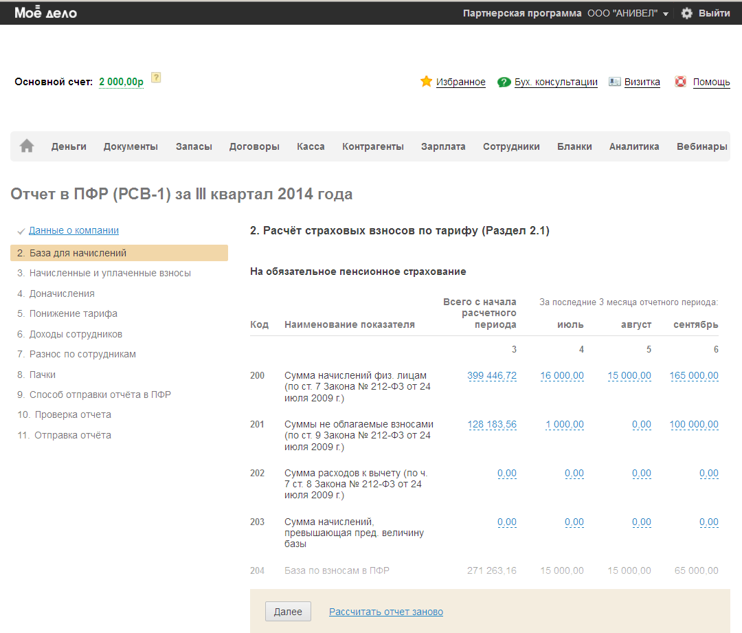Например: Чтобы понять суммы по графе 3 раздела 2.1 в отчете ПФР за 3 квартал необходимо сложить все начисления с января по сентябрь включительно.