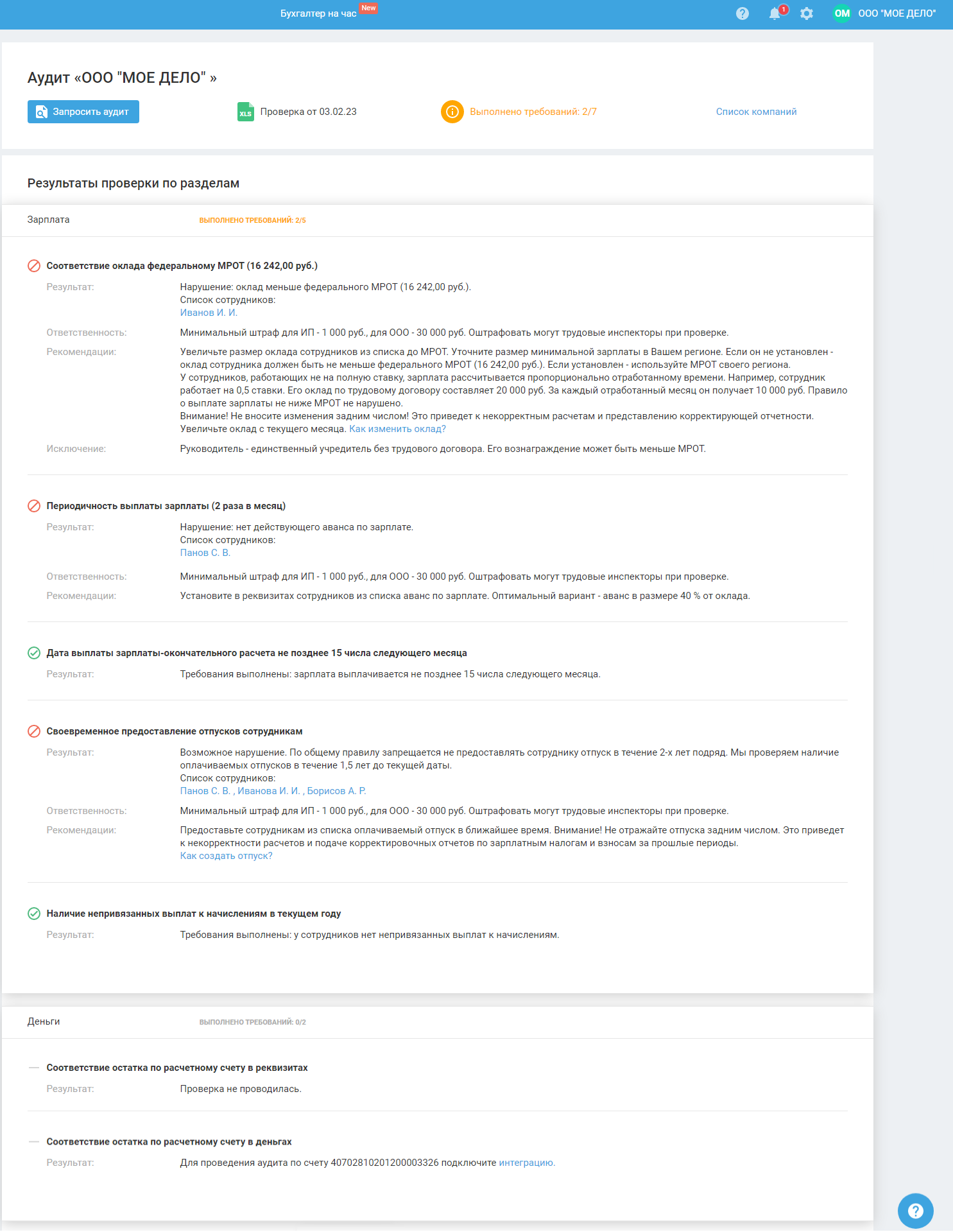 Аудит по личному кабинету в сервисе интернет-бухгалтерии позволит: