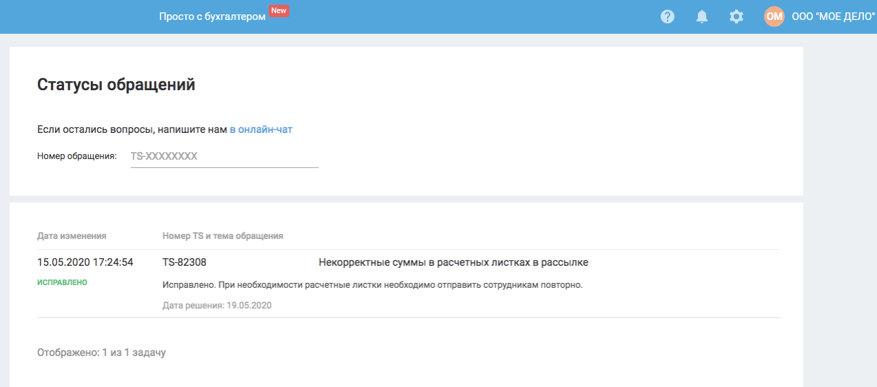 Для проверки сроков решения проблемы и узнать статус своего обращения в техническую поддержку вы можете воспользоваться данным функционалом.