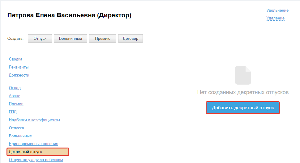 Для создания декретного отпуска ознакомьтесь с инструкцией: