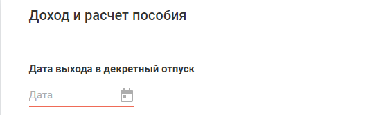 - дату выхода в декретный отпуск. Нажмите на значок в виде календаря для выбора;