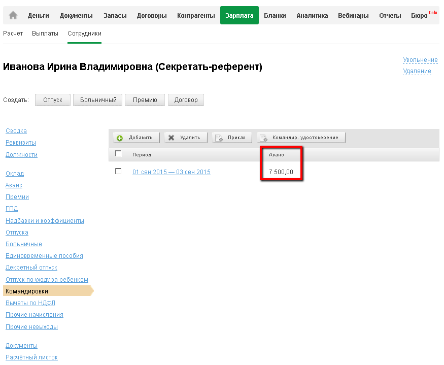 В этой графе содержатся сведения об авансах, которые были выданы работнику перед направлением его в командировку.