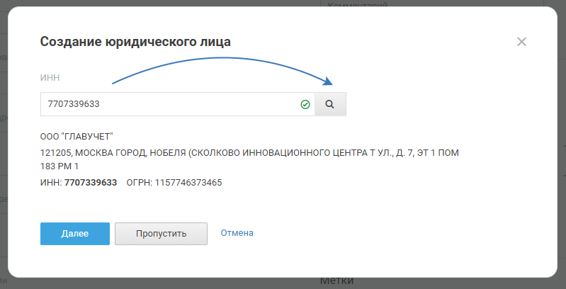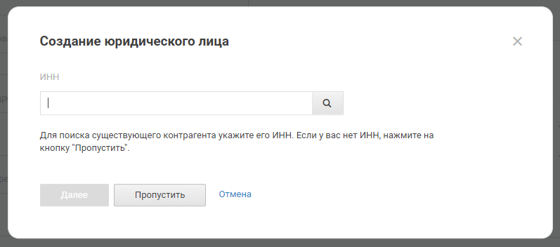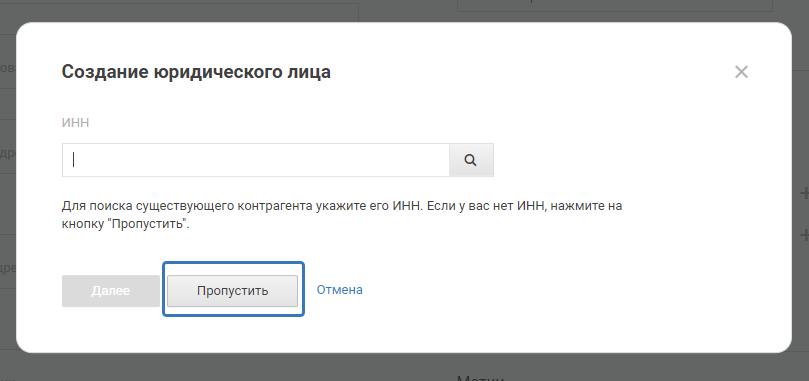 Если ИНН не известен, нажмите на кнопку "Пропустить".