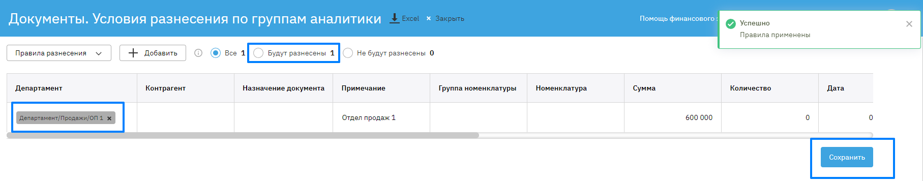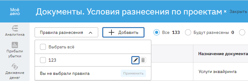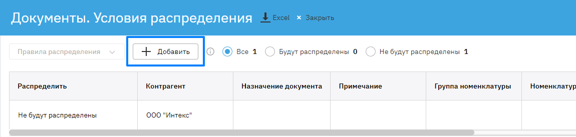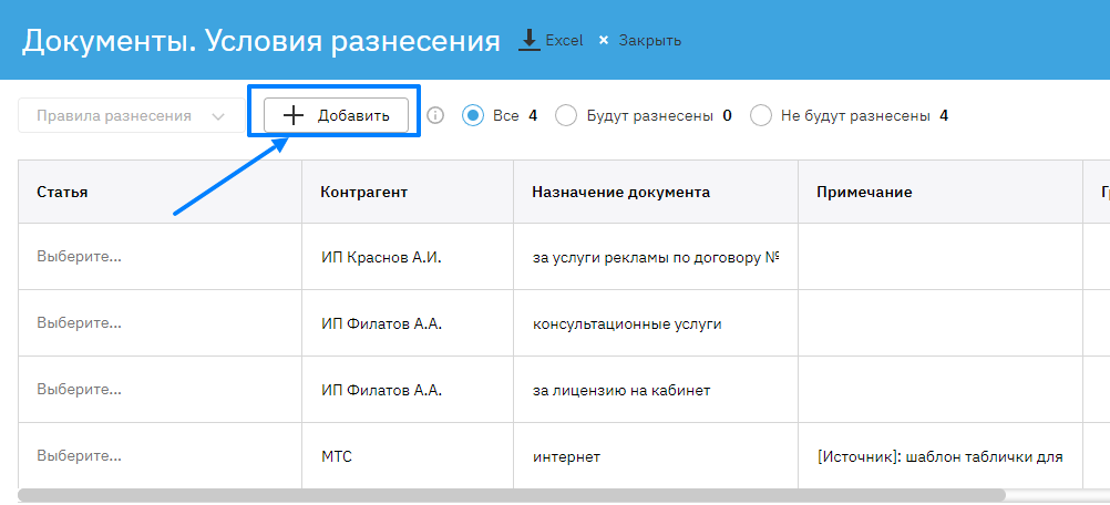 Затем отредактируйте уже существующее правило разнесения или создайте новое по кнопке «+ Добавить»: