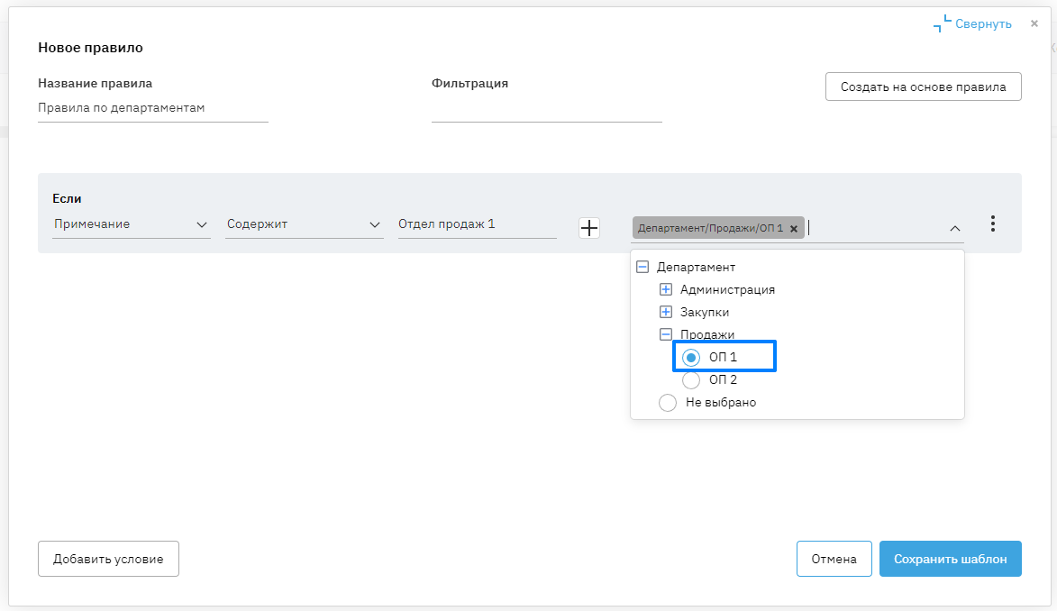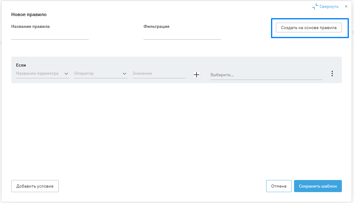 Укажите параметры правила, название правила и нажмите «Сохранить шаблон»: