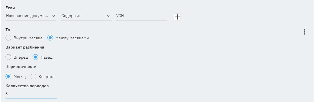 Например, вы можете задать распределение начисленного налога УСН за квартал между тремя месяцами со сдвигом назад.