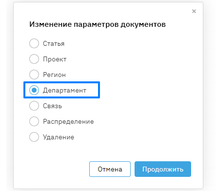 Для создания правил по группам аналитик выберите соответствующий параметр для изменения. Например, это может быть Департамент: