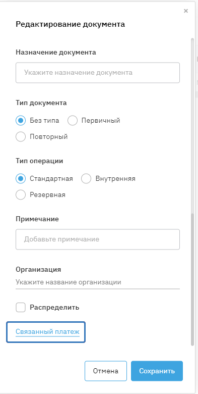 Откройте документ двойным щелчком мыши, затем нажмите на кнопку «Связанный платёж» для того, чтобы перейти в редактор платежа:
