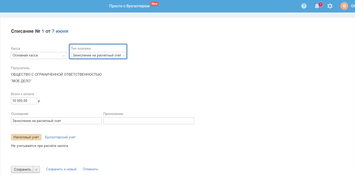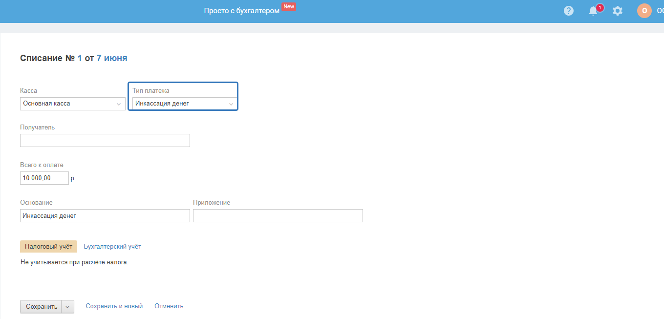 Воспользуйтесь данной инструкцией по заполнению раздела «Деньги», чтобы отразить движение денежных средств между своими счетами организации (ИП) или кассой. В УСН (ОСНО) денежные суммы не учитываются.
