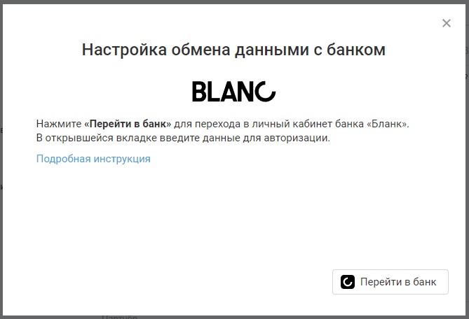 2. В открывшемся окне «Настройка обмена данными с банком» нажмите «Перейти в банк».