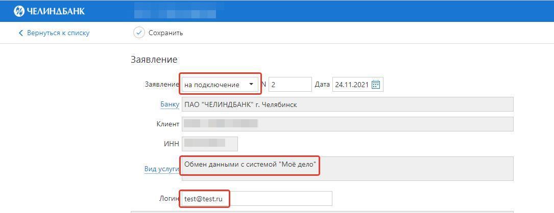 Подключение услуги в Интернет-Банке iBank2 «Челиндбанка» завершено. Теперь необходимо подключить услугу в «Моё дело».