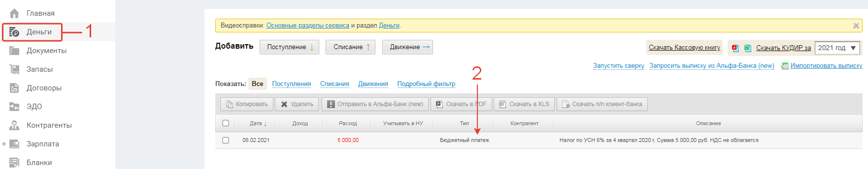 В сервисе есть возможность сформировать вручную платежи на старые реквизиты, (которые содержат только казначейский счет - без ЕКС). Для этого необходимо перейти в редактирование бюджетного платежа в разделе "Деньги".