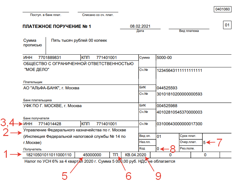 4) “ИНН” - укажите ИНН отделения ИФНС или ПФР или ФСС, в которое Вы производите оплату;