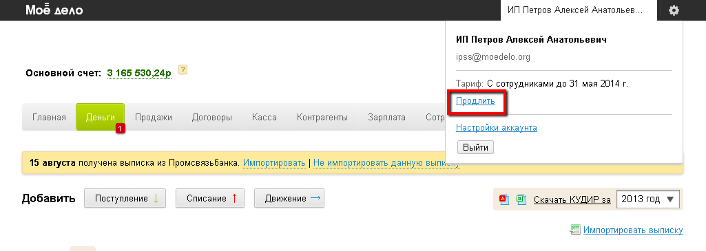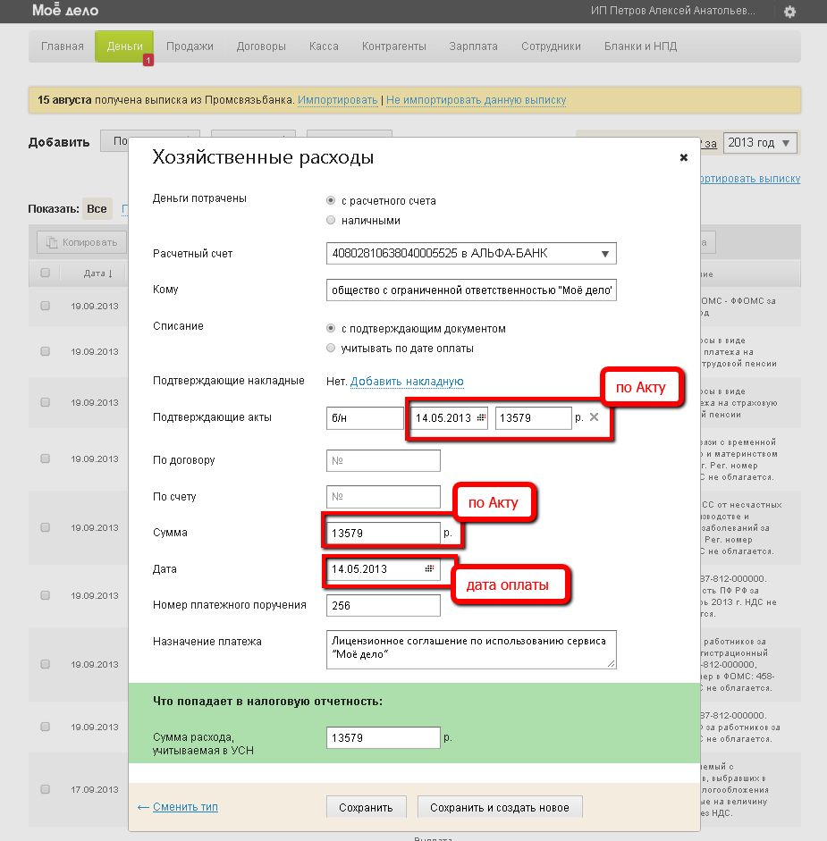 - в назначении платежа следует записать: «Лицензионное соглашение по использованию сервиса “Моё дело”».