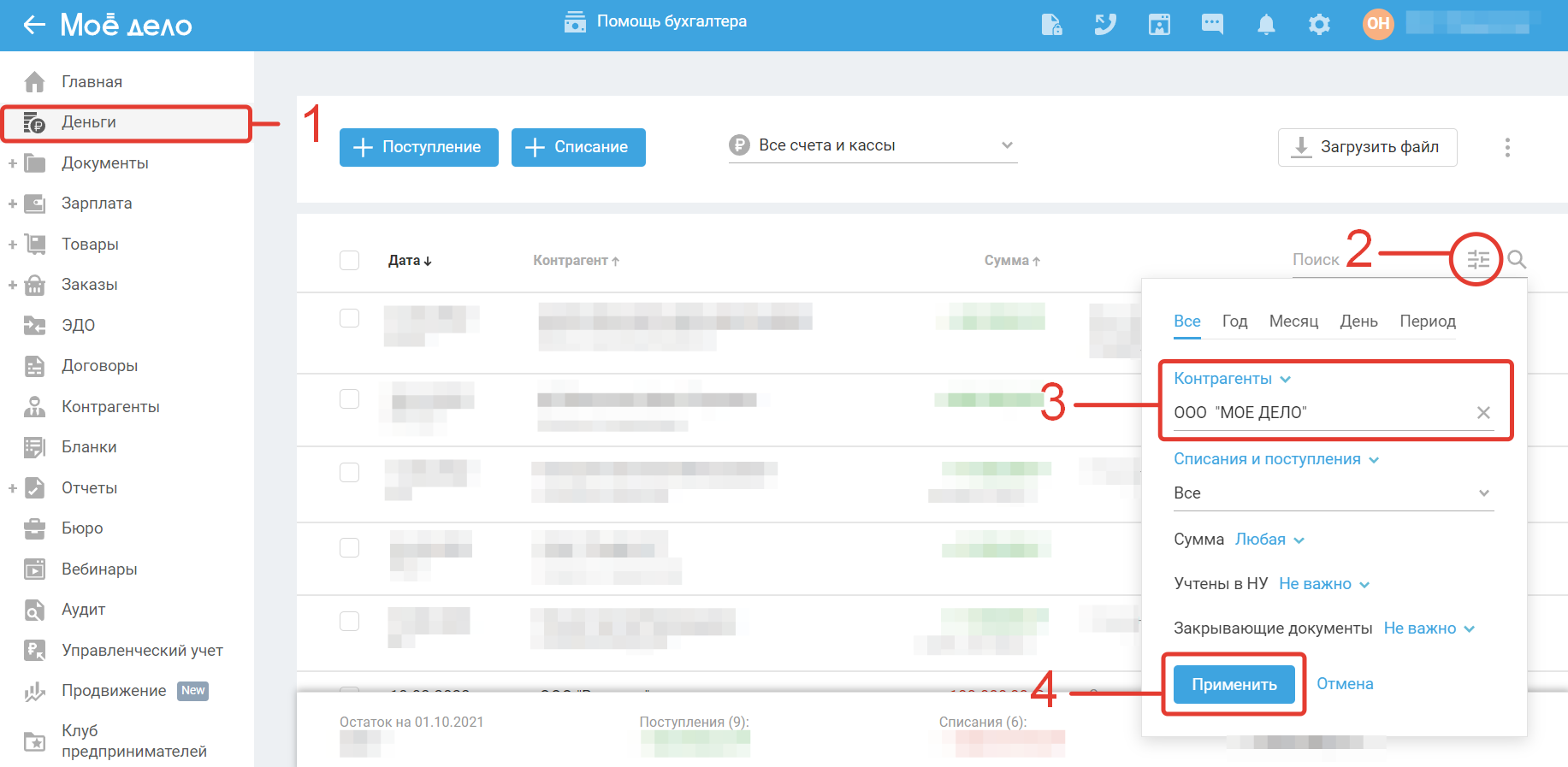 Номер счёта на оплату указан во вложении к письму, отправленном нашим специалистом на e-mail, указанный вами при регистрации. Дату оплаты можно уточнить в разделе «Деньги». Для быстрого поиска воспользуйтесь фильтром: