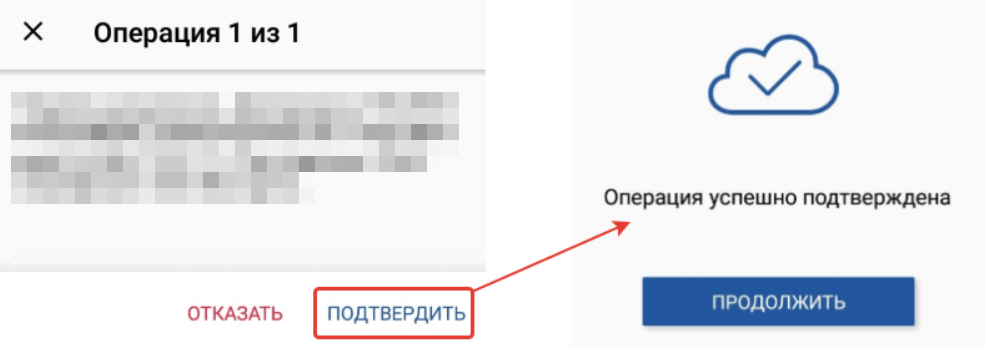 После того, как вы нажмёте на кнопку «Подписать», необходимо подтвердить подписание документов в приложении myDSS на мобильном устройстве, с которым связана ваша ЭП.