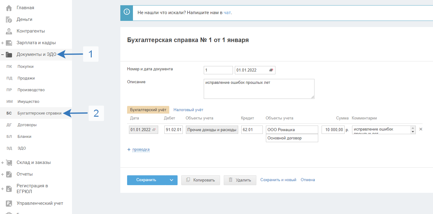 увеличение остатка по р/с прочее поступление по р/с 01.01.2023 51.01 91.01 пусто укажите свою фирму укажите сумму, на которую хотите увеличить остаток по р/с