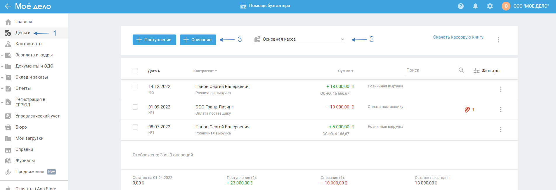 Данная операция отражается в Сервисе в зависимости от способа выплаты средств: