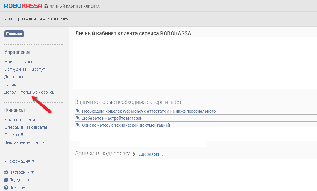 1. В сервисе «Моё дело» в разделе Реквизиты→Деньги→Платежные системы переключите тумблер на «Включить» в блоке партнёра Робокасса.