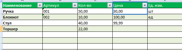 Из файла в автоматическом режиме загрузятся данные по наименованию товаров и их количеству, если соответствующие графы будут заполнены в файле (обязательная графа для заполнения — Наименование):