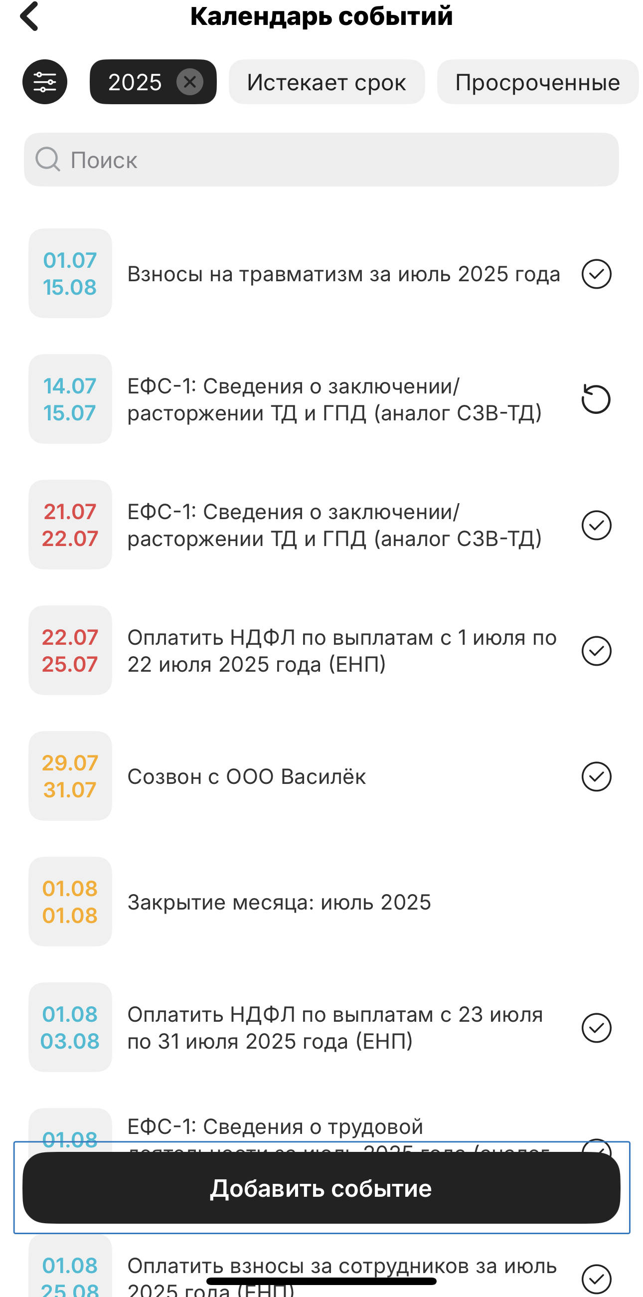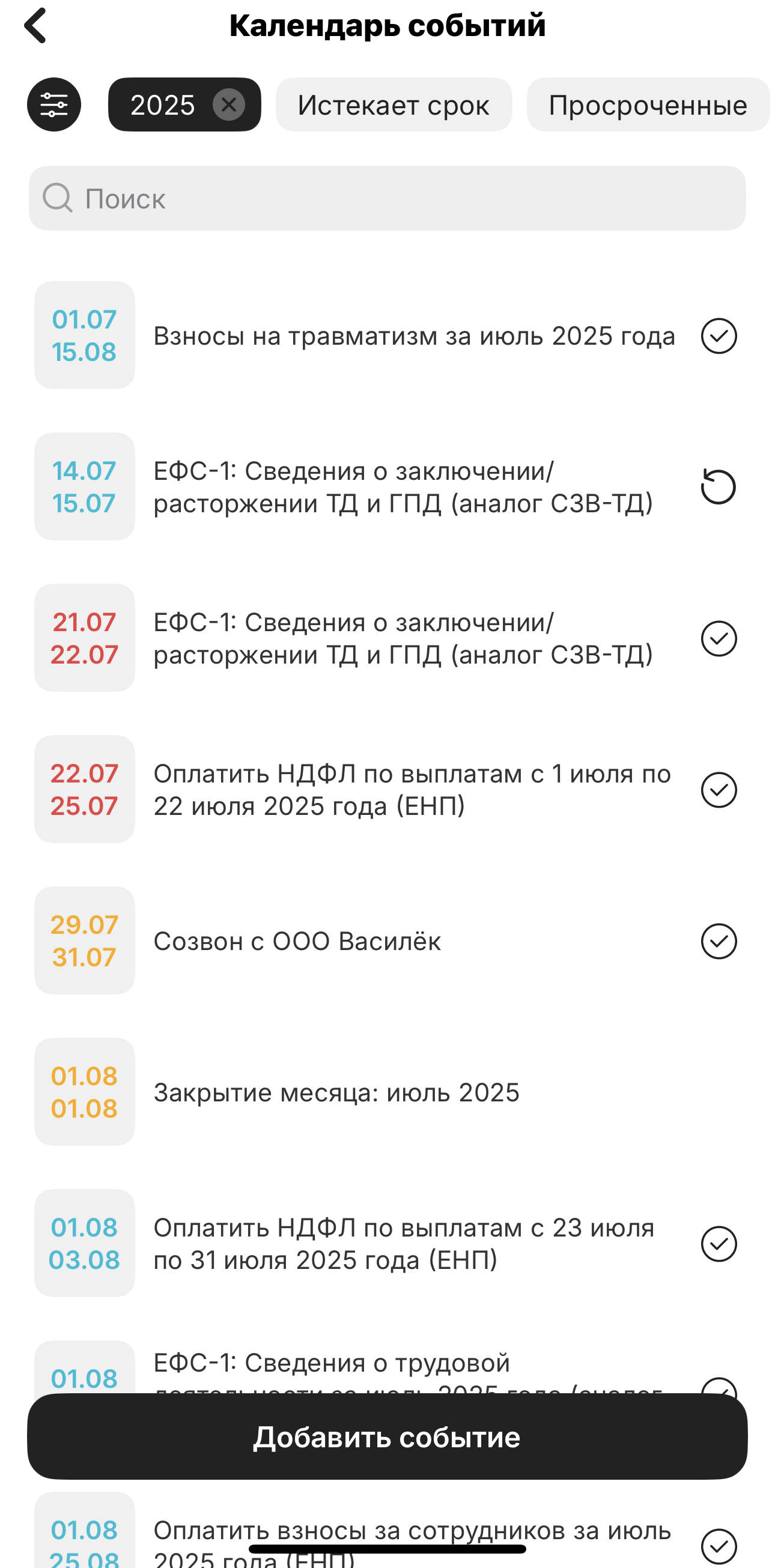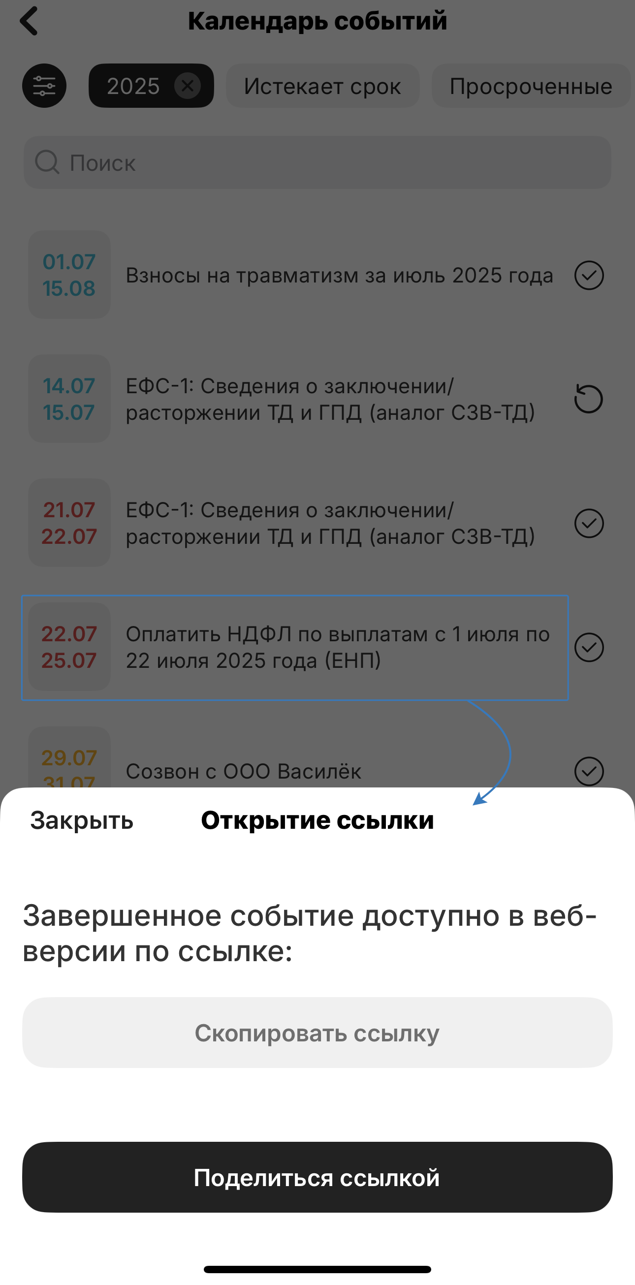 - Для пользователей интернет-бухгалтерии все события кликабельны, но кроме тех, что добавил пользователь.