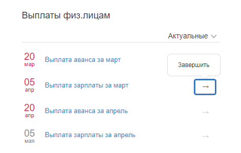 4. Если завершили событие, а затем изменили дату выплаты/начисления, то завершённое событие останется в завершённых, а в актуальных будет создано новое событие с новой датой выплаты, если даты отличаются. При возращении завершённого события в актуальные — событие пропадает, т.к. по новым условиям такой даты для выплаты нет.