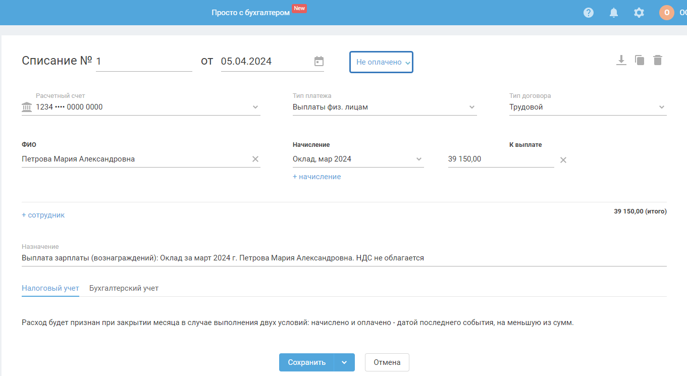 — в актуальных появится новое событие по выплате зарплаты. В событии будет отмечен сотрудник Петров с выплатой больничного.