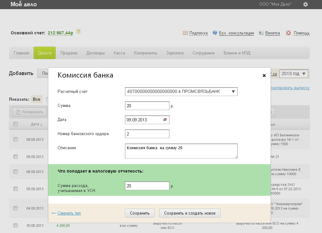 Если вы вносите подряд несколько операций по данному типу, тогда нажмите кнопку «Сохранить и создать новое». Тогда автоматически после сохранения операции откроется окно создания новой операции с тем же типом. Это ускорит процесс ручного заполнения раздела «Деньги».