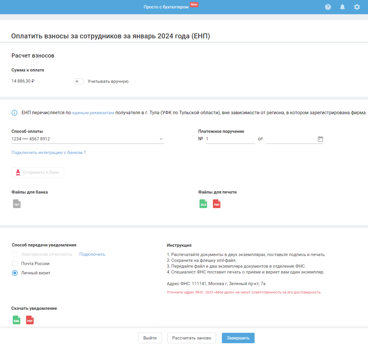 Мастер уплаты взносов за сотрудников (ЕНП)
