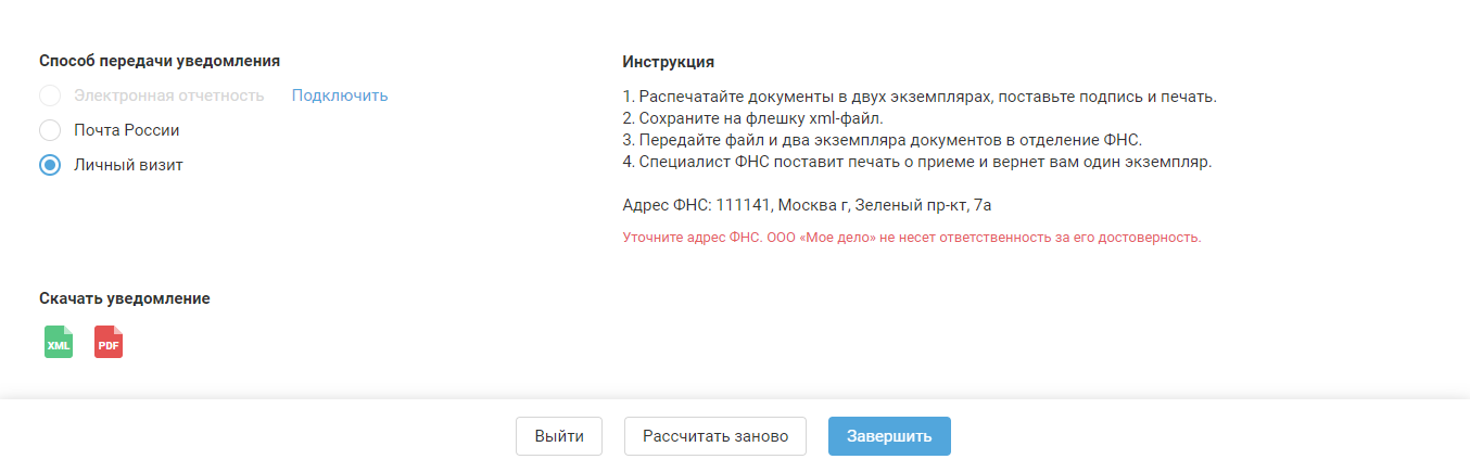 Выбрав способ, нажмите на кнопку «Завершить».