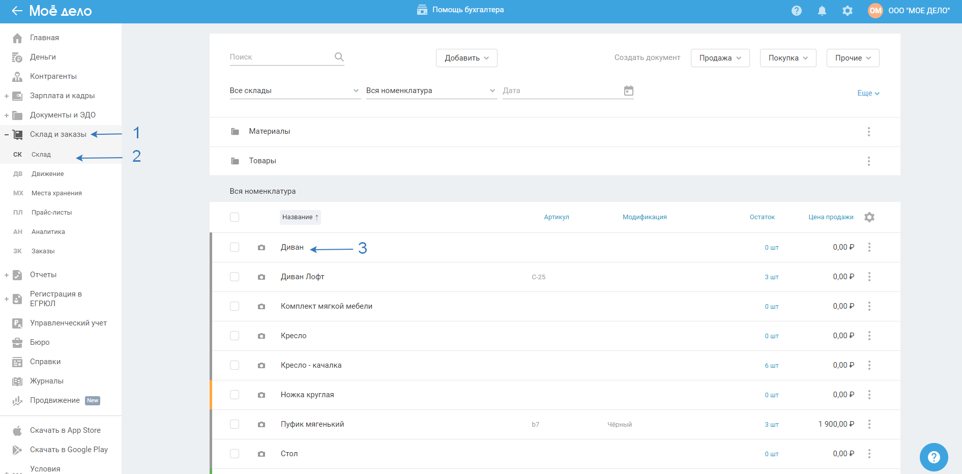 Функционал доступен только для тарифов с товароучетом и бухгалтерского аутсорсинга.