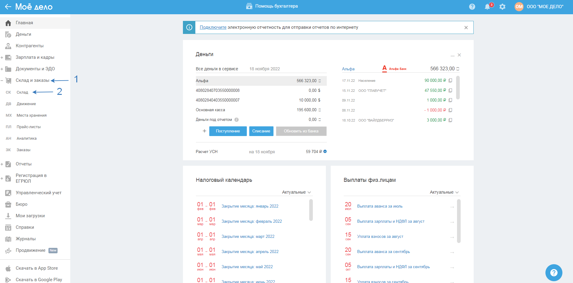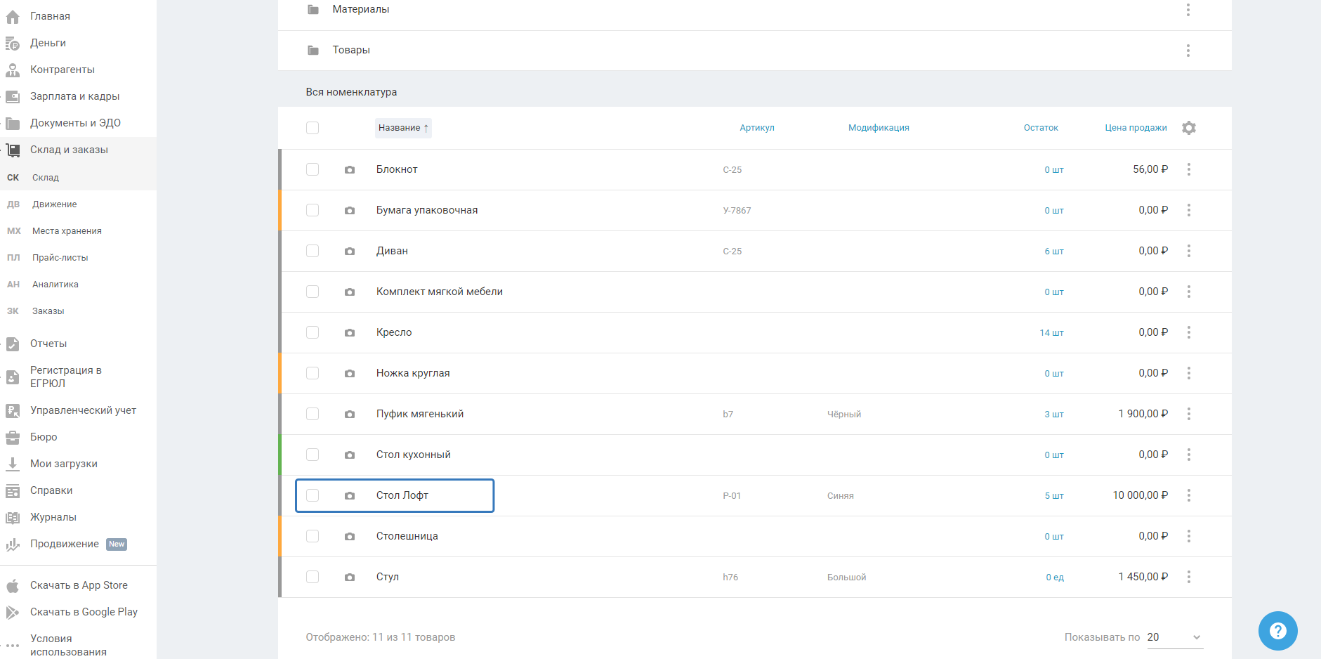 1. Перейдите в раздел «Склад и заказы — Склад»: