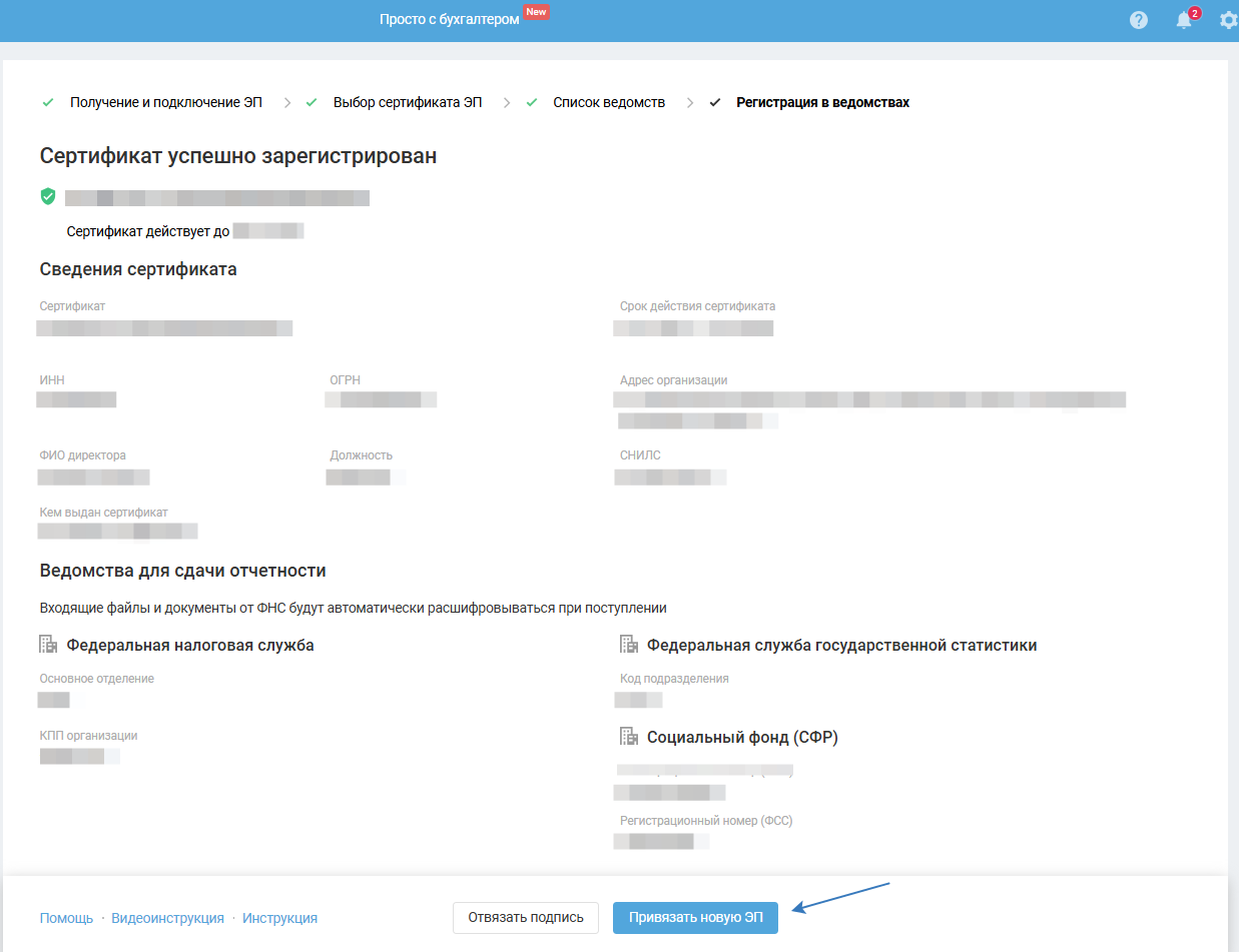 - Процедура перевыпуска завершена. Перезапустите браузер и попробуйте войти в кабинет ФНС с новой ЭП.