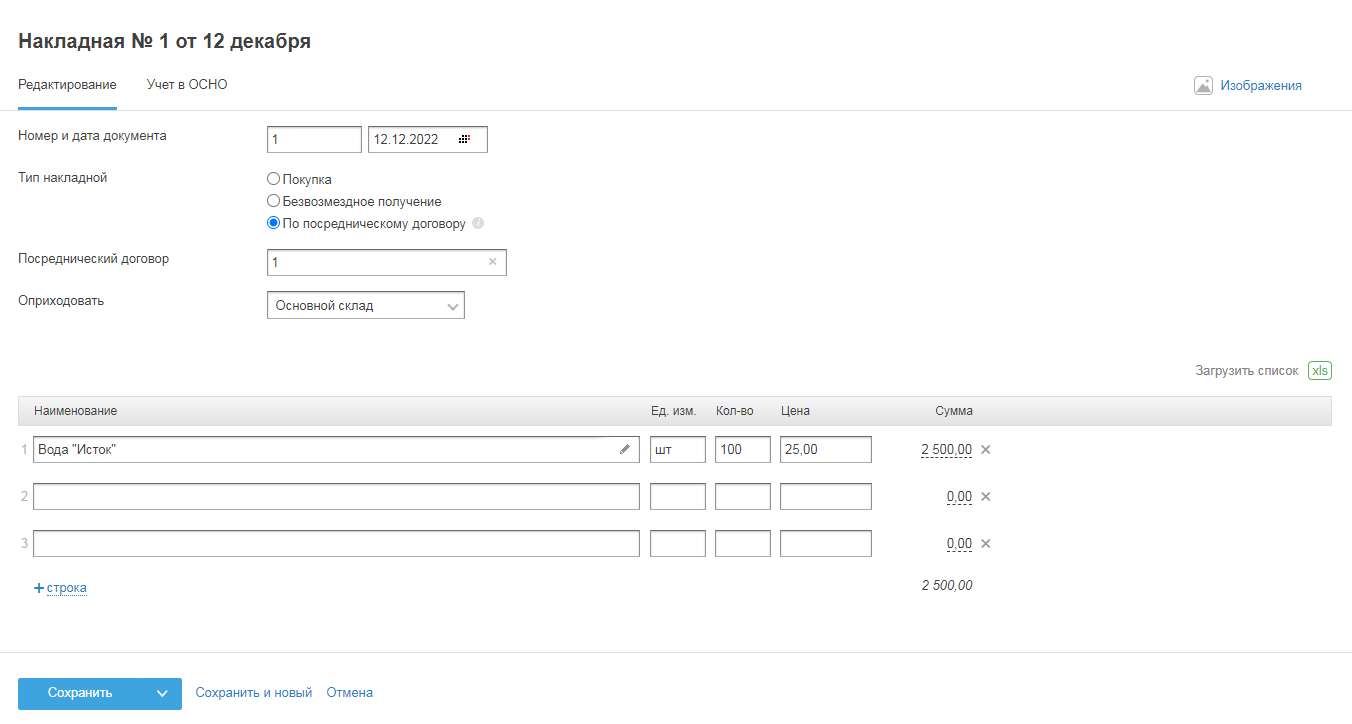 - Оприходовать — склад, на который будет оприходован товар, предварительно добавьте его в разделе «Склад и заказы — Склад». По умолчанию используется «Основной склад».