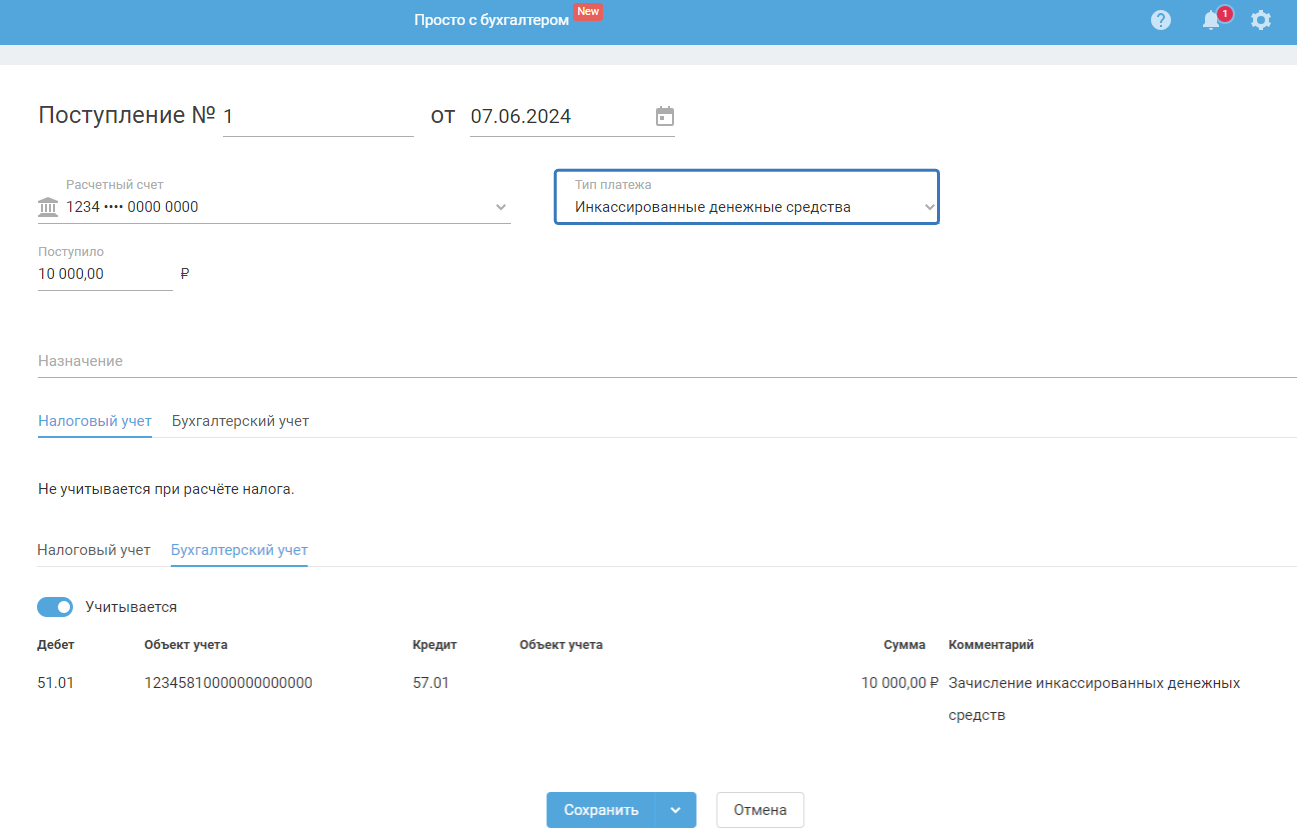 — Назначение. Можно указать «Поступление инкассированных денежных средств».